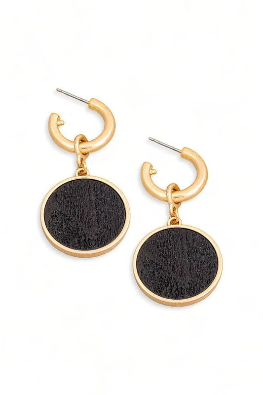 Solid Wooden Disc round Drop Plated Earrings